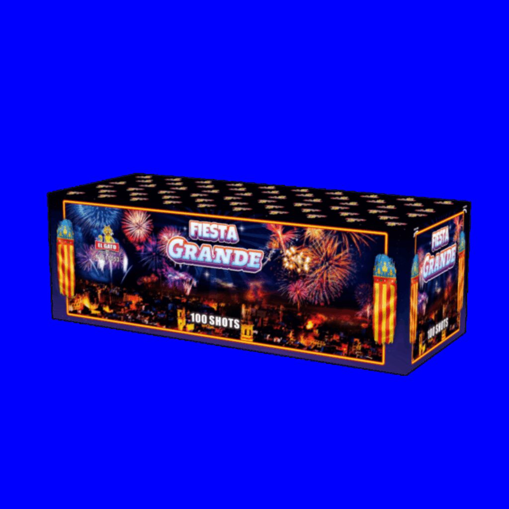 nErlebe das Spektakel mit der Fiesta Grande (Batch 25) von El Gato!nDiese Premium-Feuerwerksbatterie feuert 100 kraftvolle Schüsse mit 30 mm Kaliber ab und bietet 120 Sekunden pure Action. Freu dich auf eine atemberaubende Kombination aus V-Shape- und W-Shape-Effekten, beeindruckende Buketts und spektakuläre Explosionen. Mit 2 kg reiner Pulverpower ist die Fiesta Grande der ultimative Höhepunkt jeder Feuerwerksshow. Eine Box, eine Show – unvergessliches Feuerwerkerlebnis!